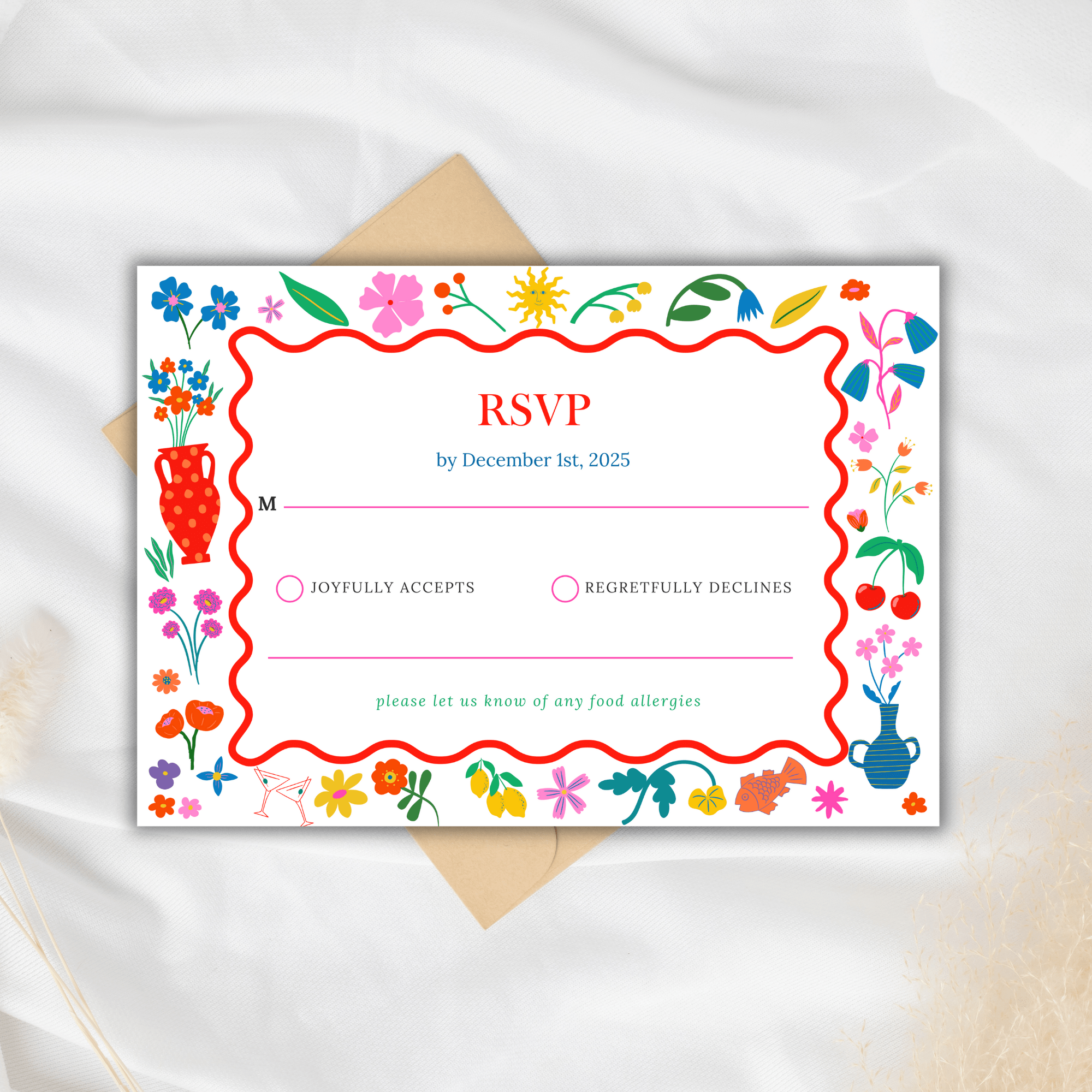 Celebrate your special day with this bright, whimsical floral wedding invitation suite, designed for couples who love color, charm, and personality. This printable invitation set is perfect for weddings, receptions, and celebrations that call for a joyful, artistic touch.